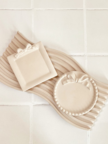 سینی پاپیونی سفید از جنس سنگ مصنوعی | شیپ عکاسی | عکاسی محصول