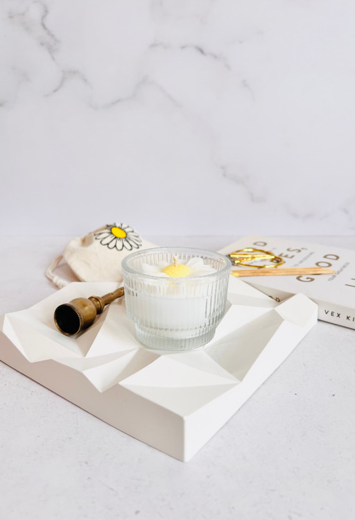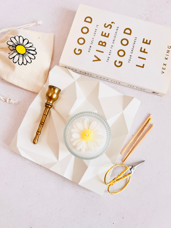 شمع گیاهی با گل بابونه و کیسه الیاف طبیعی