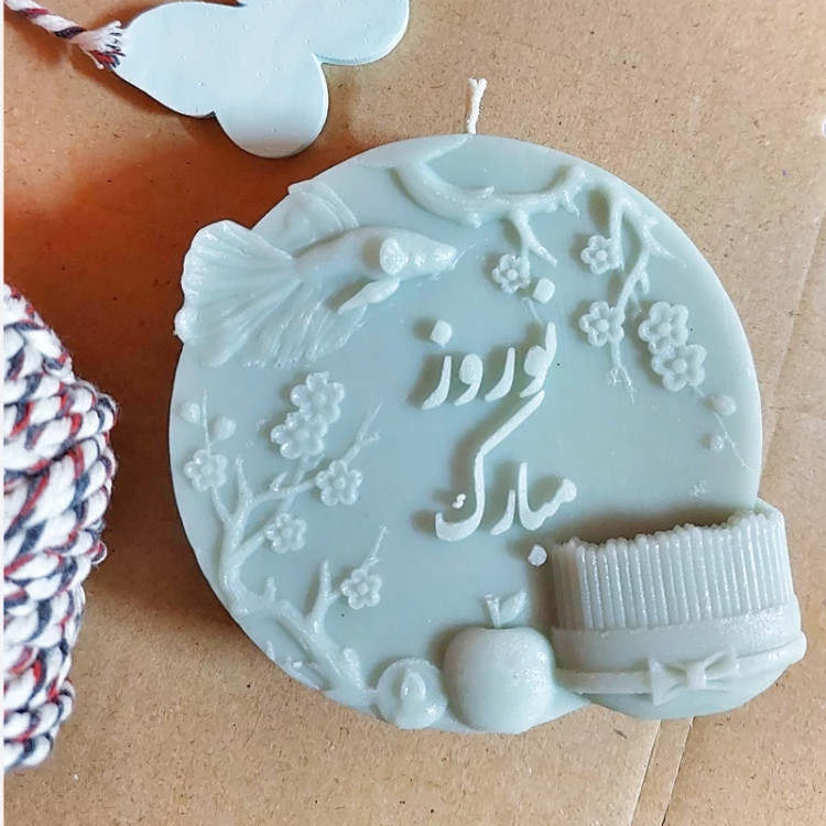 فروش عمده شمع بصورت کارتنی، مدل سکه نوروز مبارک،قطر هشت،سفارشی با هفت رنگ