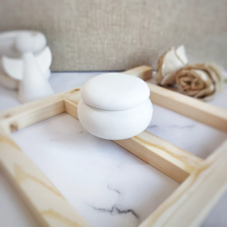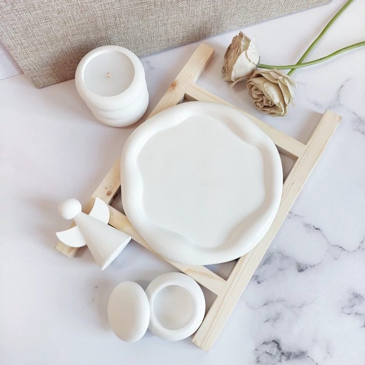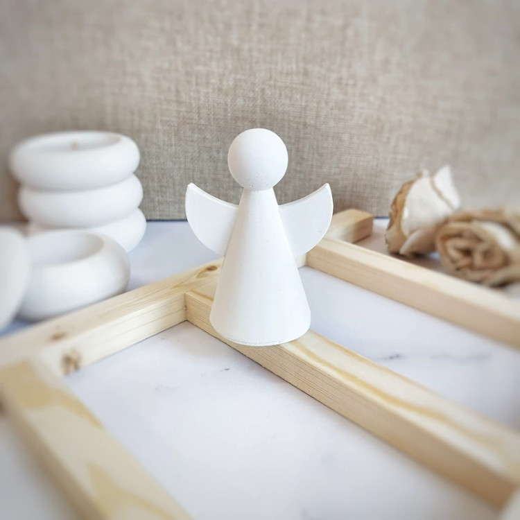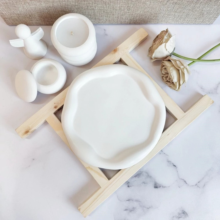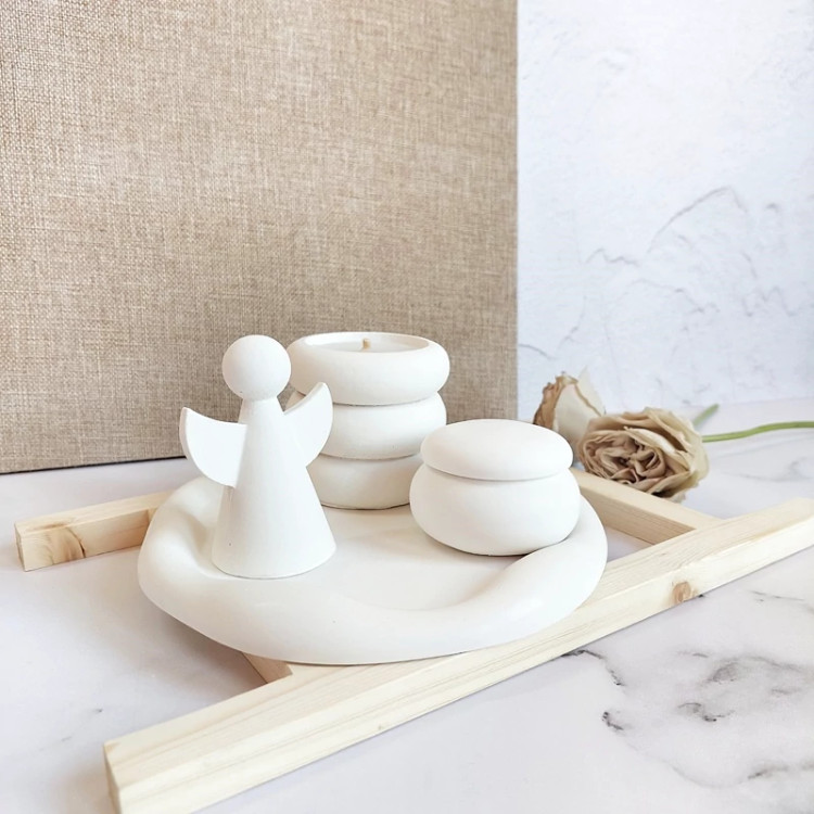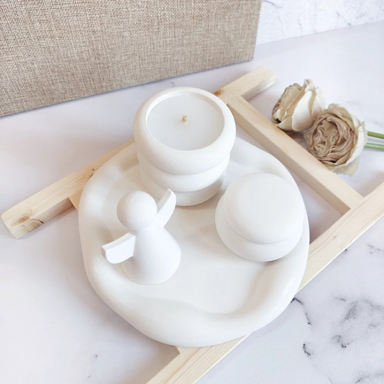 استند گرد پفکی با لبه های دفرمه ، شات شمع ، فرشته دکوراتیو و بانکه در دار می باشد،