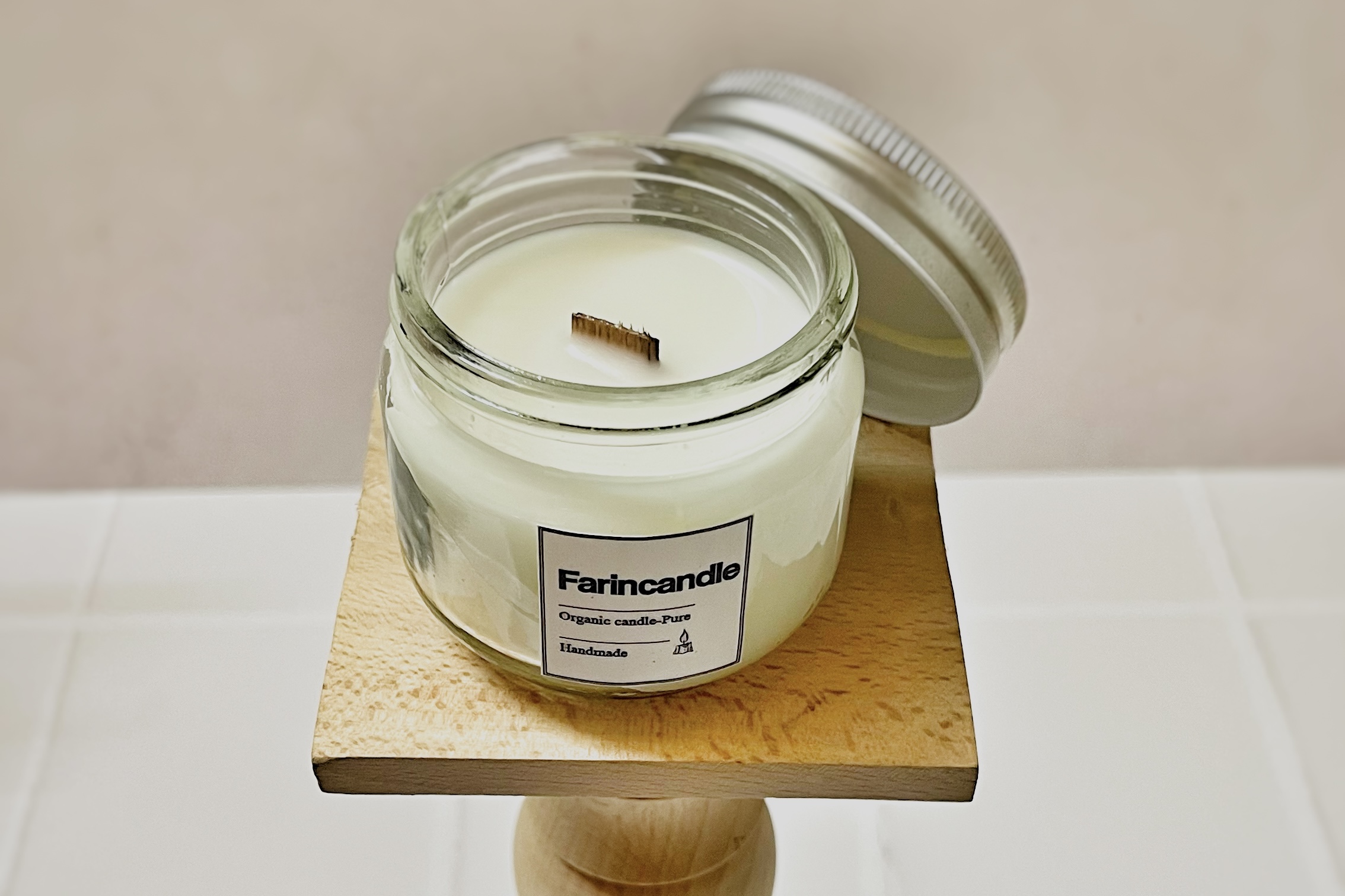 شمع شیشه ای و معطر،تهیه شده از موم طبیعی سویا، قابل سفارش با فیتیله نخی یا چوبی، رنگ و رایحه سفارشی،