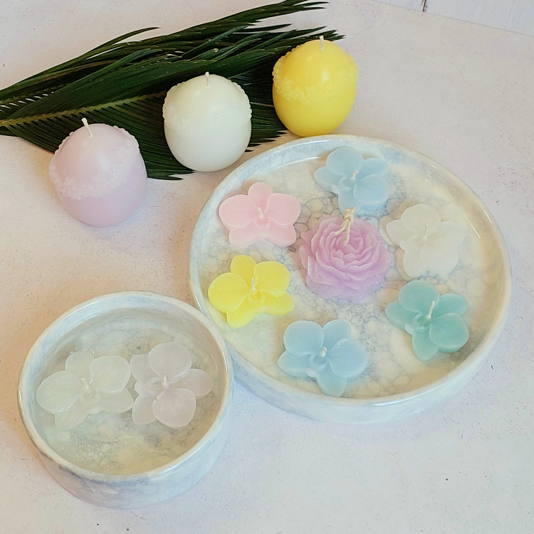 شمع شناور ارکیده / پک دوعددی مناسب هفتسین و نوروز | شمع گل | شمع هفت سین | شمع نوروز | شمع عید | شمع روآبی شناور