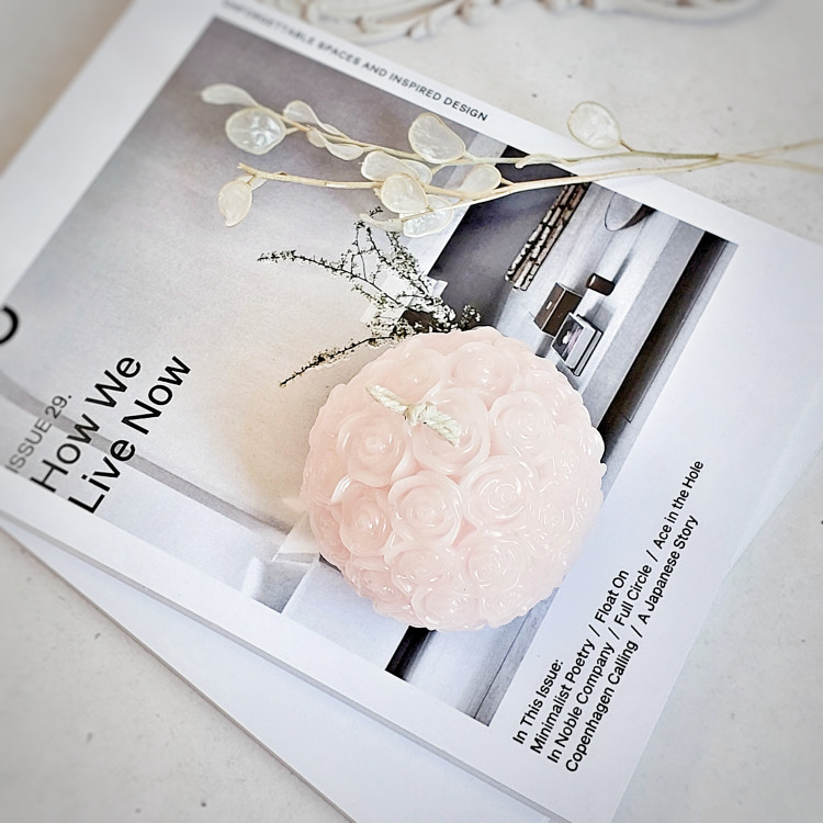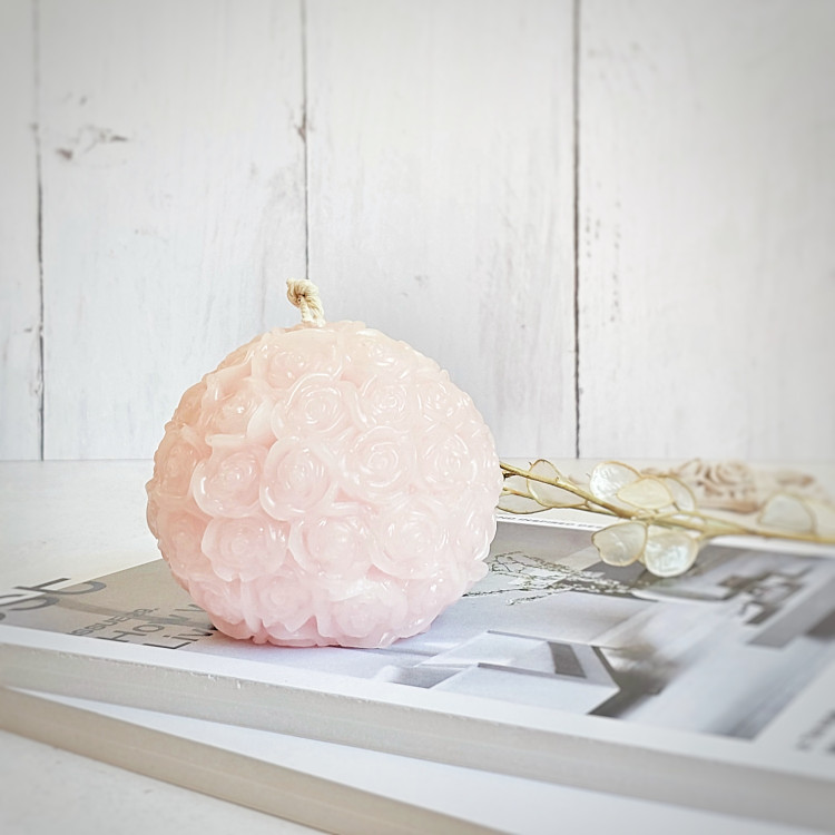 این شمع گوی کامل پوشیده با گل رز میباشد.
