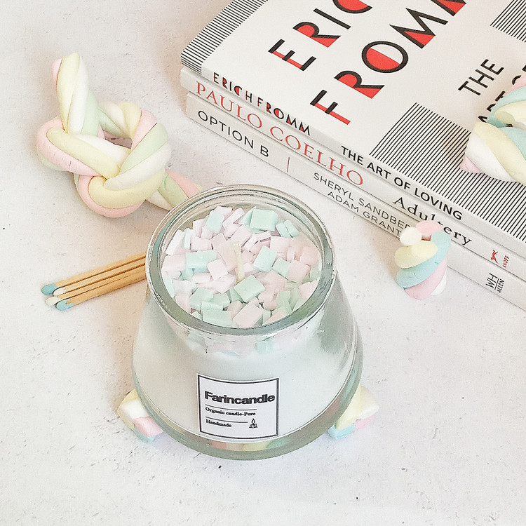 رنگ موم پایه سفید; با تزیین مکعب های خورد از جنس موم روی شمع با رنگ دلخواه